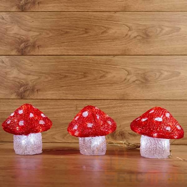 Акриловая светодиодная фигура "Семья мухоморов 3 штуки",15х15х15 см, 60 светодиодов, IP44 понижающий трансформатор в комплекте, NEON-NIGHT