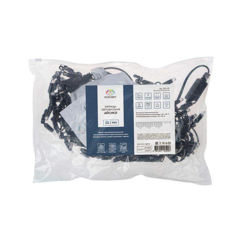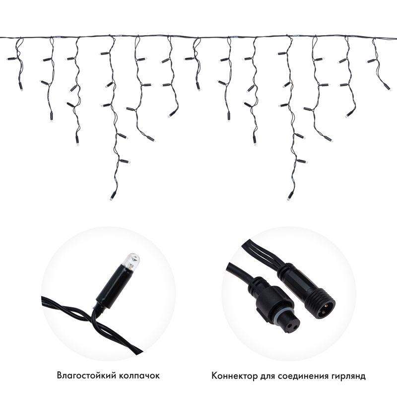 Гирлянда светодиодная "Айсикл" (бахрома) 4.8х0.6м 176LED бел. 15Вт 230В IP65 эффект мерцания провод черн. (нужен шнур питания 303-500) Neon-Night 255-175
