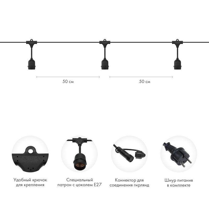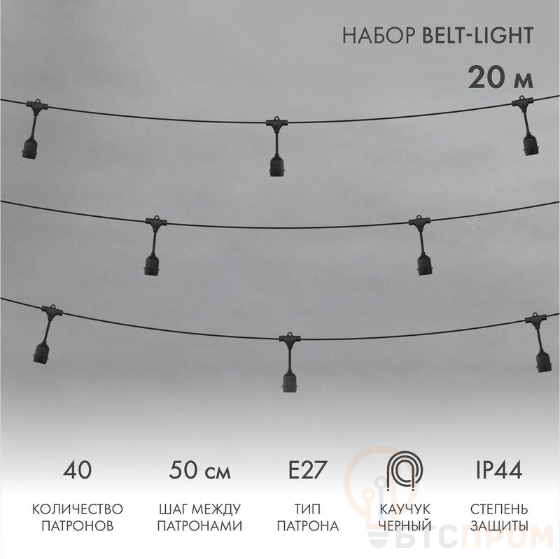 Гирлянда "Белт Лайт" 20м шаг 50см 40 подвесных патронов 550Вт IP44 провод каучук черн. Neon-Night 331-337