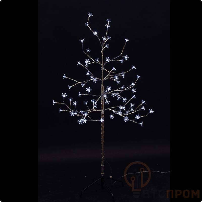 Дерево комнатное "Сакура", ствол и ветки обернуты фольгой, высота 1,2 метра, 80 светодиодов белого цвета, трансформатор IP44, длина шнура питания 10 метров, основание металлическая крестовина