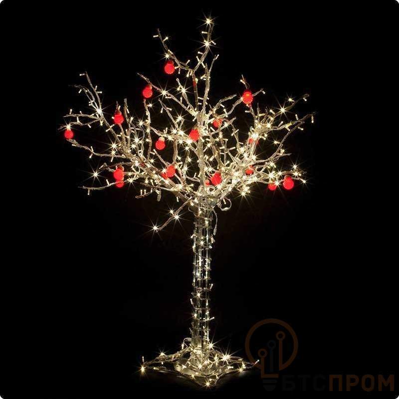 Светодиодное дерево "Яблоня", высота 1.5м, 10 красных яблок, ТЕПЛЫЙ БЕЛЫЙ светодиоды, IP 54, понижающий трансформатор в комплекте, NEON-NIGHT