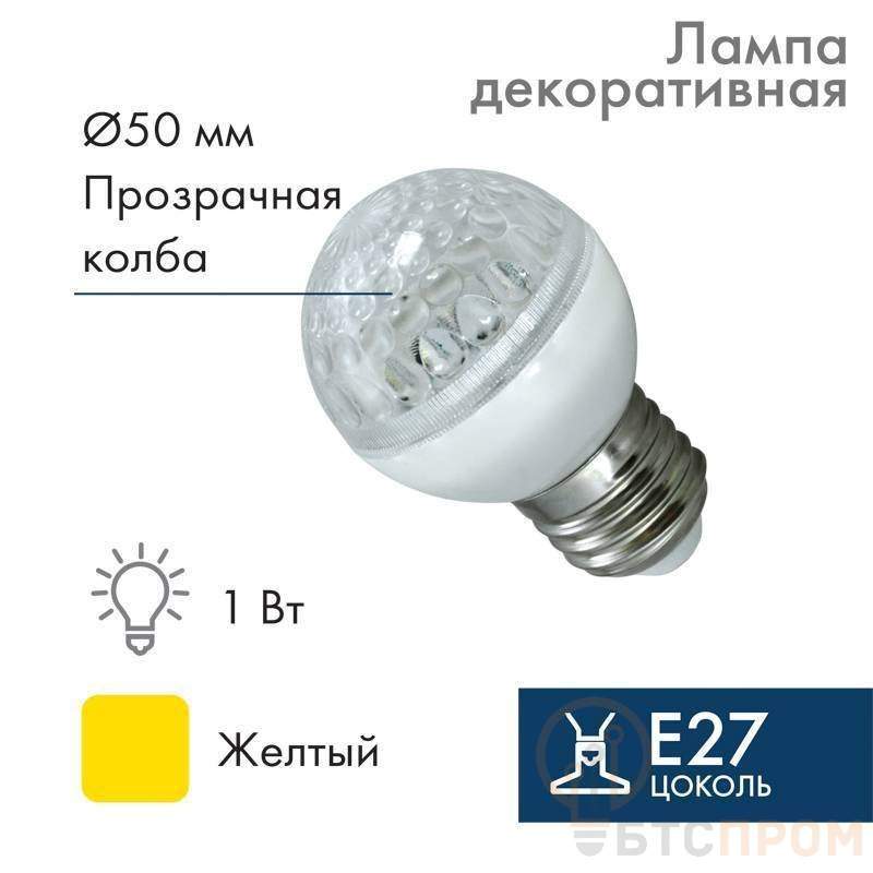 Лампа шар E27, 10 LED, диаметр 50, желтая, 24В (постоянное напряжение)