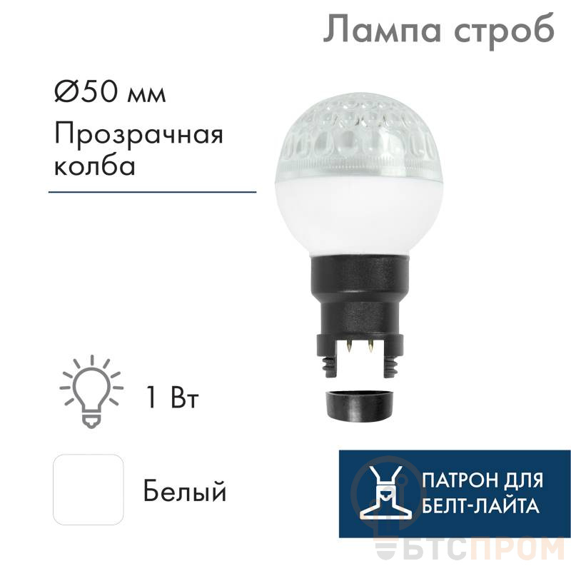 LED Лампа строб вместе с патроном. Монтируется с помощью шестигранного ключа Т10.Цвет белыйПодходит для двухжильного белт-лайта