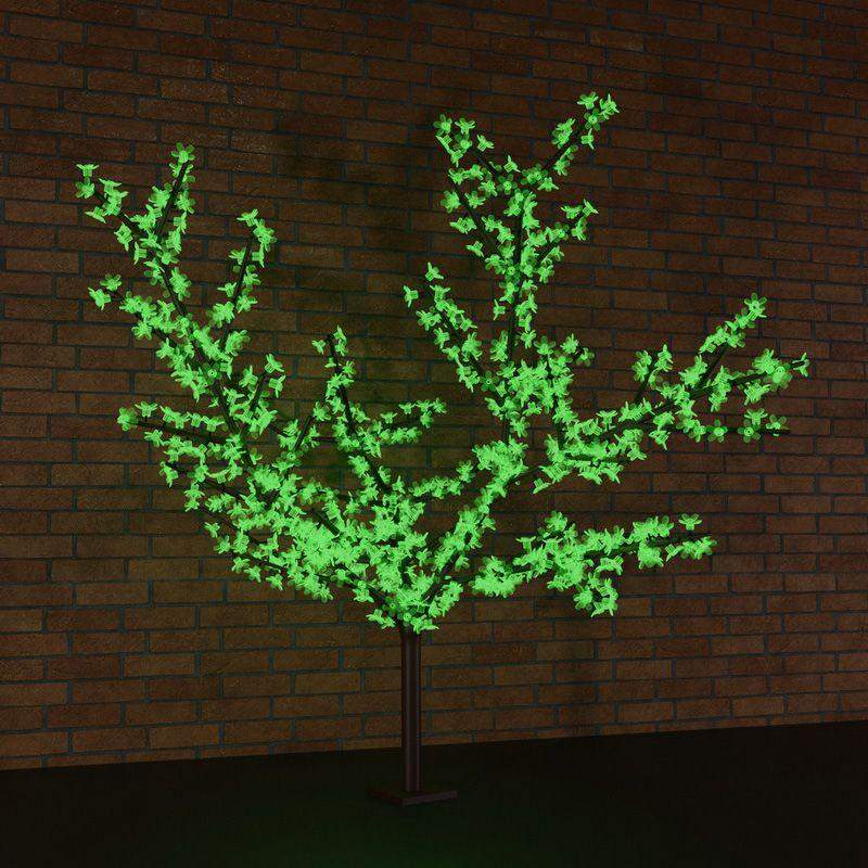 Светодиодное дерево «Сакура» высотой 3,6 метра представляет линейку декора, предназначенного для использования как в помещениях, так и на улице. Степень защиты IP65 исключает повреждение или поломку вследствие попадания воды, пыли, а широкий диапазон рабочих температур делает изделие стойким к перепадам. Большое раскидистое дерево великолепно смотрится на улице, в саду, холле торгового центра, на общественной площадке. Яркая зеленая подсветка представляет собой эффектное зрелище, которым хочется любоваться. Каждый из 6921 декоративного цветка скрывает внутри диод. Для питания от электросети предусмотрен понижающий трансформатор.