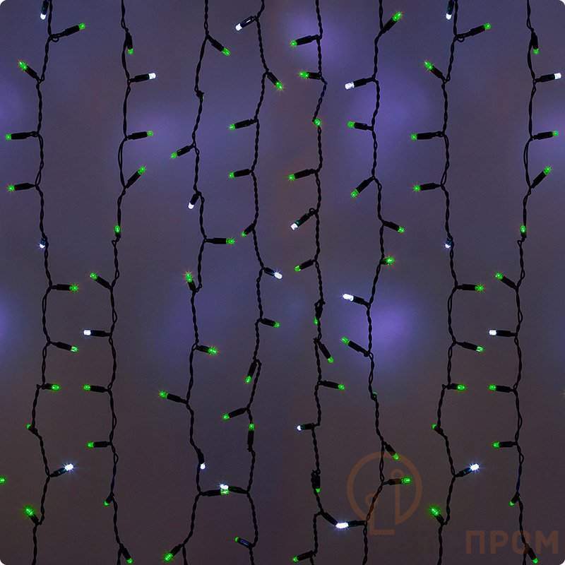 Данная гирлянда имеет зеленый цвет свечения светодиодов.