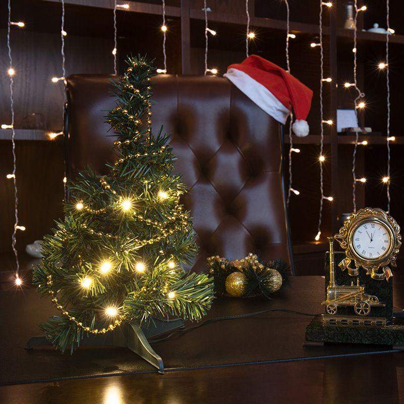 Пушистая елка — главный символ зимних праздников, который можно встретить в каждом доме. Наряженное новогоднее дерево ассоциируется с волшебством, чудесами и весельем. Искусственная елочка высотой 30 см — идеальный вариант для тех, кто стремится сэкономить пространство в помещении и не поддерживает массовую вырубку елей накануне праздников. Пять уровней состоят из 55 веток, между которыми находятся 20 ярких диодов, излучающих теплый белый свет. Декоративная ель питается через USB-кабель, который можно подключить к сетевому адаптеру.
