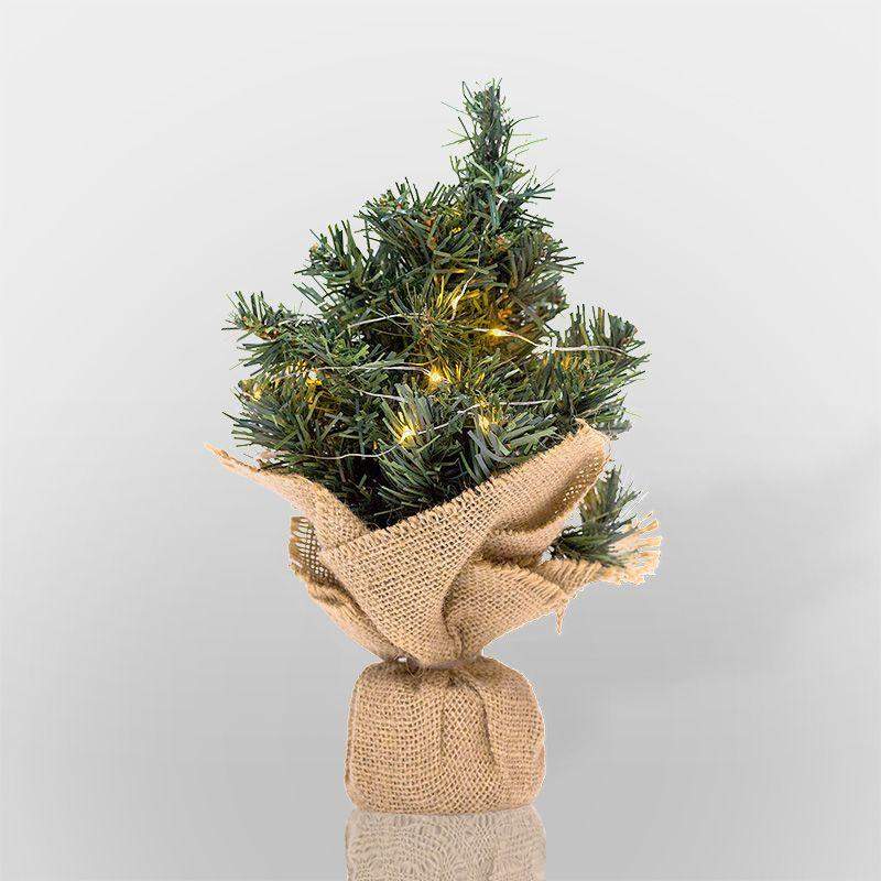 Елочка высотой 30 см в плетеном мешочке станет чудесным украшением интерьера и подходящим подарком на Новый год для родных и близких. Настольная композиция выполнена из ПВХ, искусственная пушистая хвоя имитирует настоящие еловые иголки. В текстильном мешочке находится устойчивая подставка, которую можно разместить на любой ровной поверхности. Материал изготовления характеризуется долговечностью: изделие прослужит долгие годы, не теряя первоначальный вид. Дополните елочку светодиодной гирляндой, фонариками, бантами или шарами — эффектный праздничный декор готов!