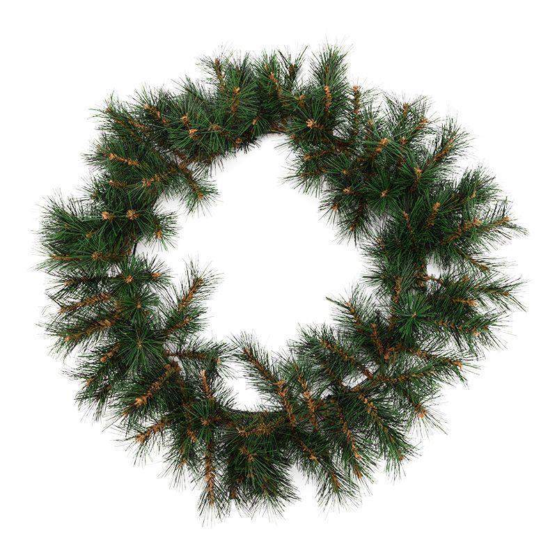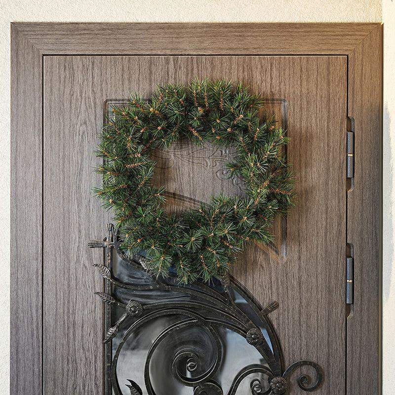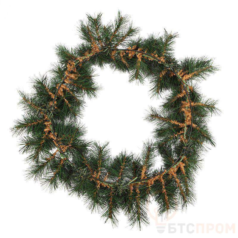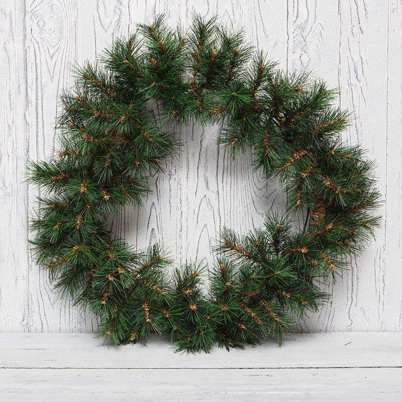 Еловый венок диаметром 60 см выполнен в виде молодых сосновых веточек, сплетенных в кольцо. Пушистая хвоя из лески смотрится максимально реалистично и прослужит более 5 лет, в отличие от натуральной елки. Можно использовать декоративное изделие как дома, так и на улице. Венок станет прекрасным украшением входной двери, окон, мебельных фасадов, стен. Пушистые ветки можно дополнить шарами, светодиодными фигурками, гирляндами и мишурой.