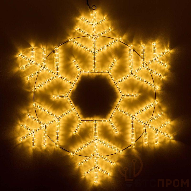 Светодиодная фигура СНЕЖИНКА. Размер 1000x900 мм. Цвет светодиодов ТЕПЛЫЙ БЕЛЫЙ (3000 К), постоянное свечение. 504 светодиодов. Напряжение питания 230 В, потребляемая мощность 31 Вт, степень пылевлагозащиты IP65. Фигура укомплектована проводом питания для подключения к сети 230 В (без вилки питания).