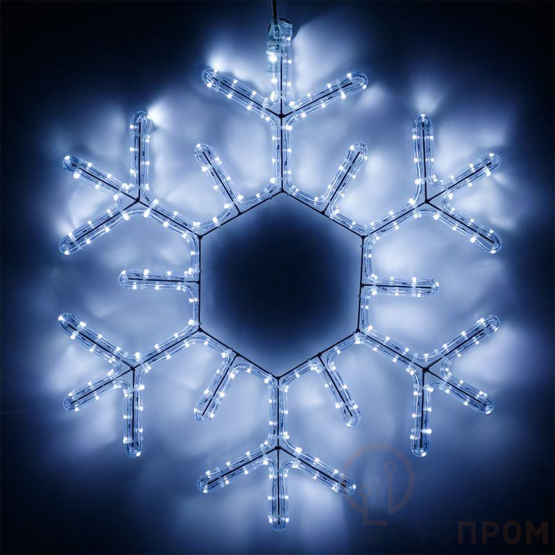 Светодиодная фигура СНЕЖИНКА. Размер 600x600 мм. Цвет светодиодов БЕЛЫЙ (6000 К), постоянное свечение. 216 светодиодов. Напряжение питания 230 В, потребляемая мощность 15 Вт, степень пылевлагозащиты IP65. Фигура укомплектована проводом питания для подключения к сети 230 В (без вилки питания).
