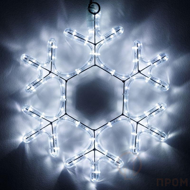 Светодиодная фигура СНЕЖИНКА. Размер 450x375 мм. Цвет светодиодов БЕЛЫЙ (6000 К), постоянное свечение. 108 светодиодов. Напряжение питания 230 В, потребляемая мощность 6.5 Вт, степень пылевлагозащиты IP65. Фигура укомплектована проводом питания для подключения к сети 230 В (без вилки питания).