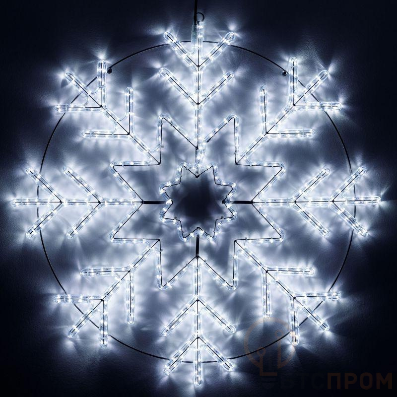 Светодиодная фигура СНЕЖИНКА. Размер 950x950 мм. Цвет светодиодов БЕЛЫЙ (6000 К), постоянное свечение. 540 светодиодов. Напряжение питания 230 В, потребляемая мощность 33 Вт, степень пылевлагозащиты IP65. Фигура укомплектована проводом питания для подключения к сети 230 В (без вилки питания).