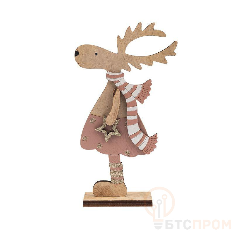 Деревянная фигурка «Рождественский Олень» 10,5?4?18 см — интересное решение для оформления интерьера в преддверии зимних праздников, которое разнообразит привычную обстановку и подарит ощущение сказки. Резная фигурка выполнена в виде улыбающегося персонажа в розовом платье, который держит золотистую звездочку. Изделие произведено из натуральной древесины и окрашено безопасным составом. Композиция станет прекрасным подарком родным и близким, который напомнит о существовании новогодних чудес.