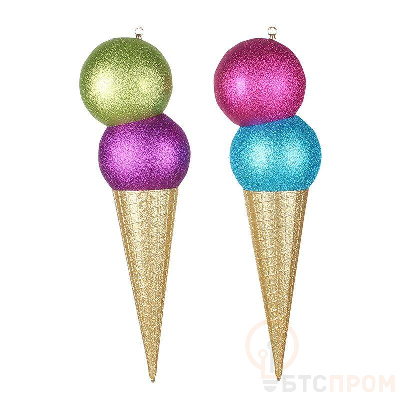 Елочная фигура "Мороженное" 80 см, из пластика, цвет рожка: золотой с блестками, цвет шариков: голубой и фиолетовый или светло-зеленый и фиолетовый