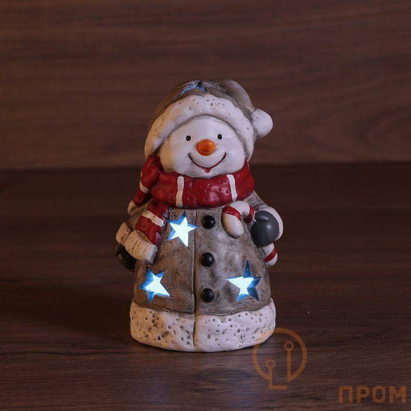 Керамическая фигурка «Снеговичок в шарфе» 7,5х 6,5х 12 см станет чудесным интерьерным украшением и желанным подарком для детей и взрослых. Декоративная фигурка подсвечивается 1 диодом, который питается от двух батареек типа LR44. Благодаря независимости от электрической розетки, изделие можно разместить в любом уголке вашего дома. Аккумуляторный отсек закрывается при помощи надежной крышки, рядом расположена кнопка ON/OFF. Защита IP20 предполагает домашнее использование в условиях умеренной влажности. Элементы питания идут в комплекте.