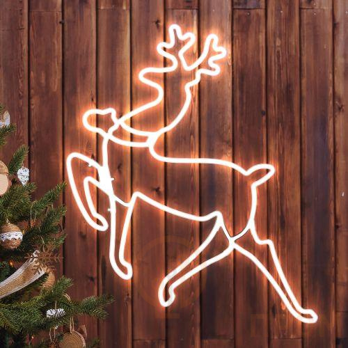Светильник новогодний светодиодный ЭРА ENIOF-14 "Неоновый олень" (арт. Б0051952) размером 64 х 60 см станет необычным украшением Вашего дома! Фигура состоит из 480 светодиодных лампочек, которые помещены в трубки из ПВХ получается необычная имитация неона. Светильник повторяет очертания рождественского оленя, выглядит лаконично и впишется, пожалуй, в любой интерьер. Такой новогодний декор для дома можно поместить на стену кухни, гостиной или спальни, чтобы он радовал Вас, создавая праздничное настроение. Данный светильник имеет класс защиты IP44, длина кабеля 1 м, питание 220 В. Олень станет прекрасным подарком близких на Новый год и Рождество.