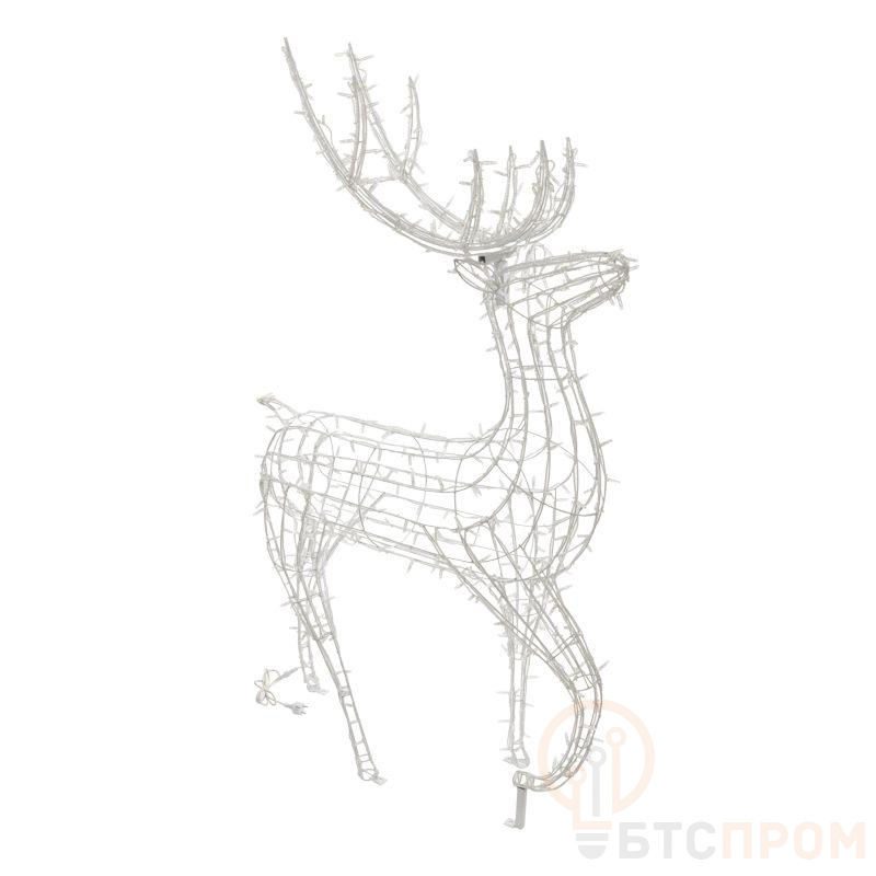 Объемная световая фигура выполнена из металлического каркаса с использованием светодиодных гирлянд. В данной модели использовано 528 светодиодов, размер 115х195 см, цвет диодов – теплый белый. Питание от сети 230 В.
