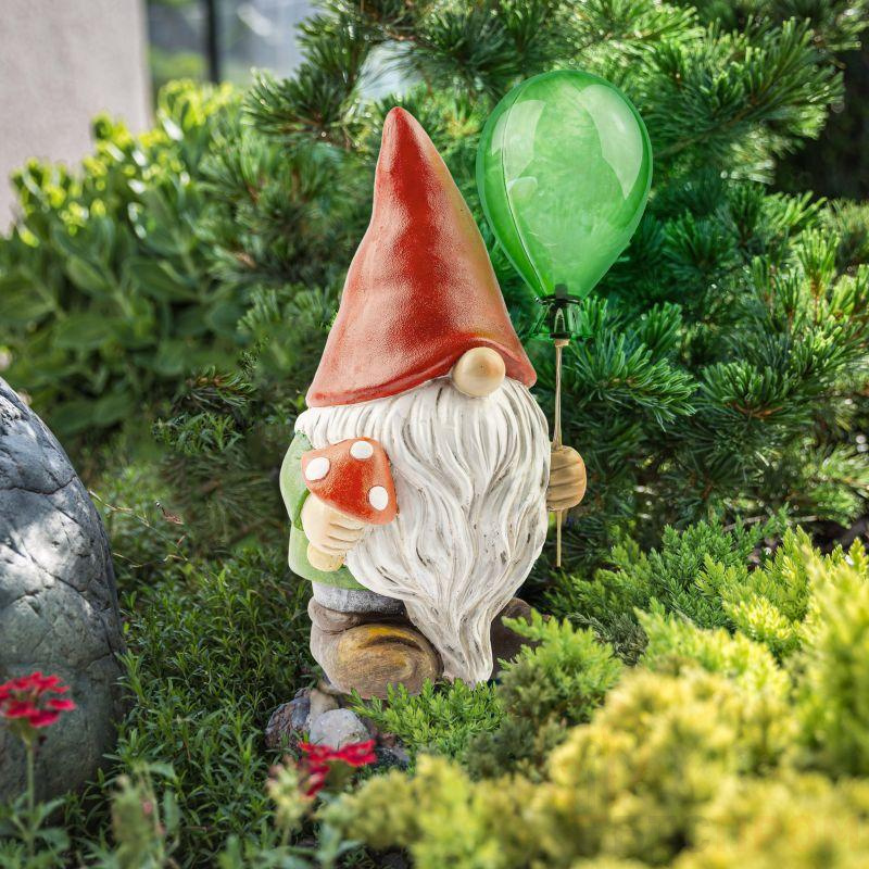 Фигурка садовая "Гном Мухомор" с шариком от компании ЭРА оживит пейзаж Вашего дачного участка! Этот уличный светодиодный светильник можно разместить в саду - в палисаднике, украсить беседку, веранду, кустарник, оригинально подсветить аллею или вход в дом. Садовый фонарь ERASF22-08 высотой 30 см выполнен из полистоуна и хорошо детализирован. Беспроводной светильник работает на солнечной батарее - этот тип получения энергии является самым экологичным, энергоемким, а также бесшумным. Питание происходит во включенном режиме в солнечную погоду, фигурка сама включается с наступлением ночи и работает до 8 часов. Зеленый шарик с подсветкой точно понравится и детям, и взрослым, и создаст неповторимую атмосферу праздника!