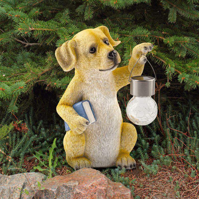 Фигурка садовая декоративная ЭРА "Умный пёс"станет эффектным обитателем Вашего загородного участка! Этот уличный светодиодный светильник можно разместить на даче - украсить им террасу, альпийскую горку, подсветить тропинку или теплицу. Фигурка ERASF22-09 высотой 27 см выполнена из полистоуна, все детали хорошо проработаны. Беспроводной садовый фонарь работает на солнечных батареях, такой тип получения энергии является самым экологичным, энергоемким, а также бесшумным. Питание происходит во включенном режиме в солнечную погоду, с наступлением ночи фигурка сама включаетсяи работает до 8 часов. При желании фонарик можно снять с лапки пса. Холодное свечение шара сделает ваш вечер очень атмосферным!
