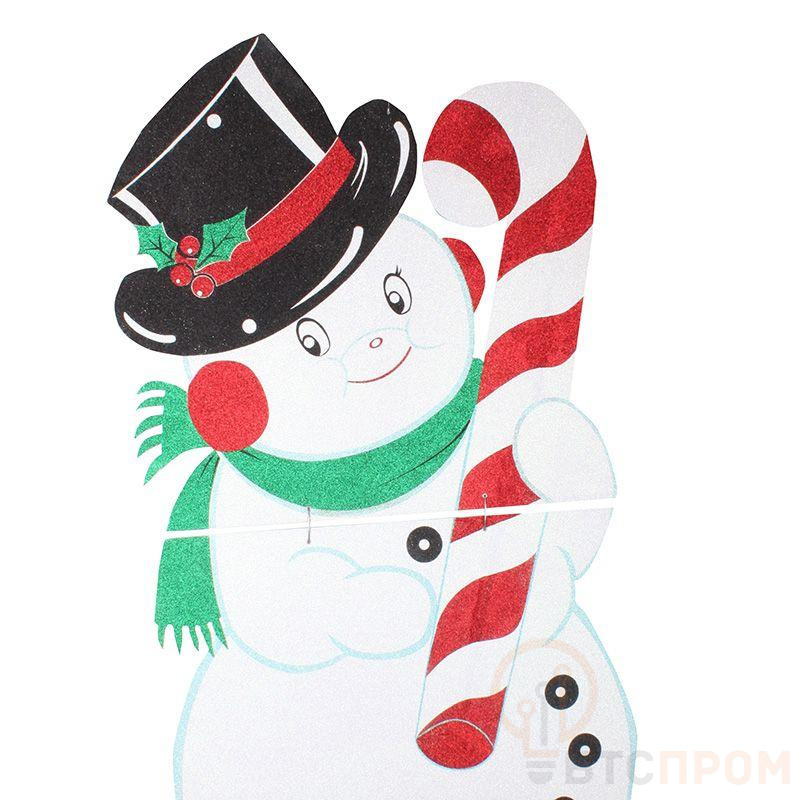 Елочная фигура "Снеговик" 175*90 см, цвет белый, шляпа черного цвета, шарф зеленого цвета, в руках карамельная палочка белого цвета с красными полосками
