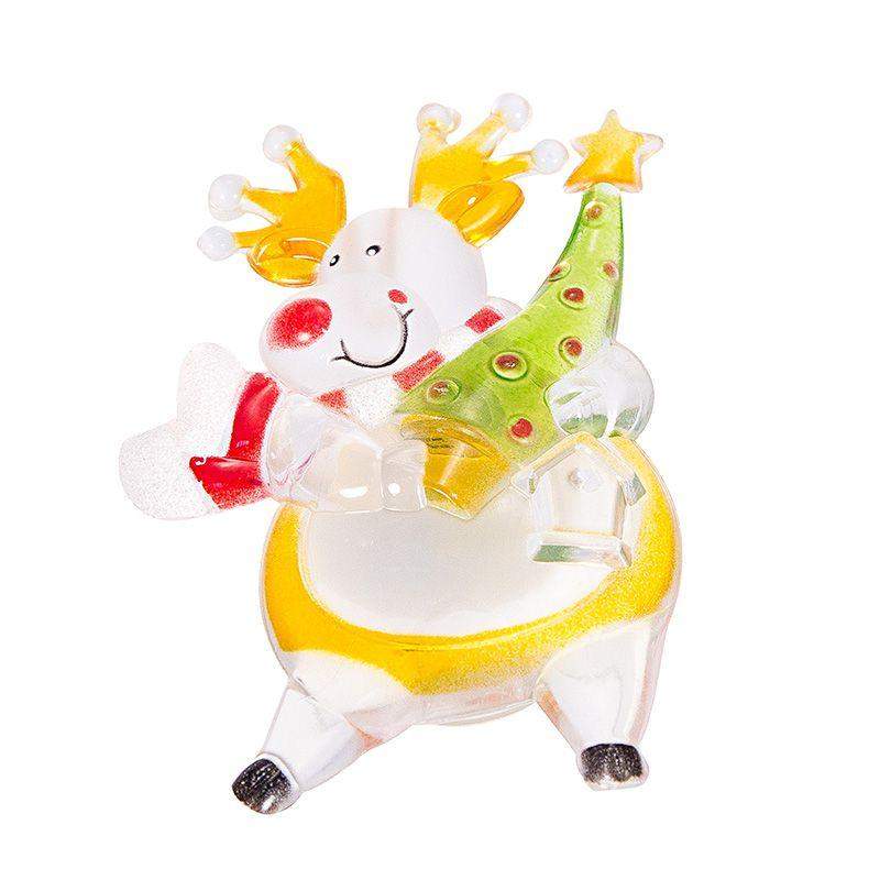 Светодиодная фигурка «Олень» выполнена из ударопрочного пластика в виде забавного новогоднего персонажа, который станет милым украшением детской комнаты и приятным подарком к зимнему празднику для родных и друзей. 1 диод RGB эффектно подсвечивает композицию, плавно меняя оттенки из 256 разных вариантов. Цвета переключаются в хаотичном порядке. Для надежного крепления на гладких поверхностях предусмотрена присоска. Фигурку не нужно подключать к электросети: питание осуществляется при помощи 2 батареек типа CR2032, размещаемых в специальном модуле на обратной стороне.