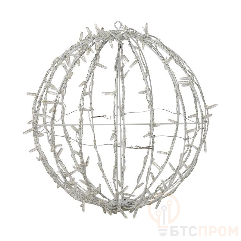 Шар светодиодный используется для оформления праздничных интерьеров жилых и общественных зданий, развлекательных комплексов. Может быть использован на открытых пространствах, в качестве украшения новогодних елей, установленных в местах народных гуляний. Световая фигура на каркасной основе, питание 220-240 В, диаметр 30 см, 120 светодиодов, каждый 5-й диод мерцает, цвет теплый белый.
