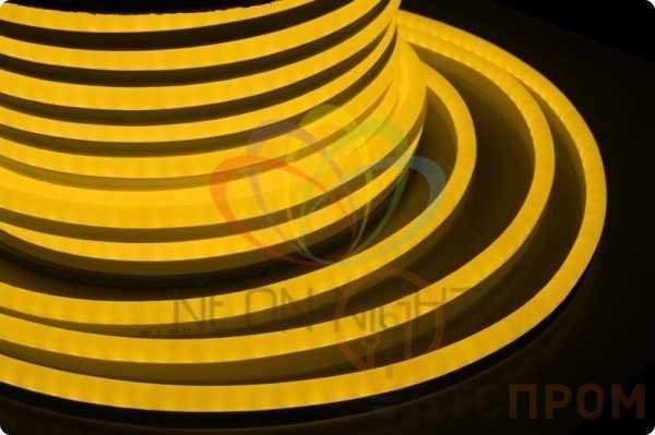 Гибкий неон - световой шнур выполненный из матовой белой ПВХ трубки с токопроводящими жилами и светодиодами внутри. Используется для декоративной и архитектурной подсветки объектов, так же широко распространён в украшении интерьера. Шнур имеет два токопроводящих провода внутри и используется в режиме постоянного свечения. Желтый гибкий неон поставляется в бухтах длиной 50 м, имеет модуль резки 1,5 метра, следуя несложной инструкции легко можно отрезать и подключить гибкий неон нужной длины. Каждая бухта уже укомплектована 5-ю шнурами для подключения, максимальная подключаемая на 1 шнур длина 50 м. дополнительные шнуры можно приобрести отдельно. Температурный диапазон использования от -40 до +50 С, монтаж необходимо производить при температуре выше 0 градусов.При подключении гибкого неона к соединительному разъему (муфте) необходимо заизолировать свободное воздушное пространство соединительного разъема (муфты) морозостойким силиконовым герметиком, предотвращающим попадание влаги. Сверху данного соединения необходимо использовать термоусаживаемую трубку.