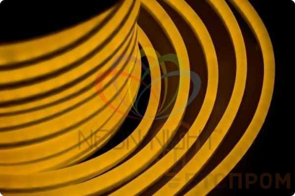 Гибкий неон - световой шнур выполненный из матовой желтой ПВХ трубки с токопроводящими жилами и светодиодами внутри. Используется для декоративной и архитектурной подсветки объектов, так же широко распространён в украшении интерьера. Шнур имеет два токопроводящих провода внутри и используется в режиме постоянного свечения. Гибкий неон поставляется в бухтах длиной 50 м, имеет модуль резки 1,22 метра. Следуя несложной инструкции легко можно отрезать и подключить гибкий неон нужной длины. Температурный диапазон использования от -45 до +35 оС, монтаж необходимо производить при температуре -25 до +35 оС. Допустимый диаметр изгиба составляет 2 см.При подключении гибкого неона к соединительному разъему (муфте) необходимо заизолировать свободное воздушное пространство соединительного разъема (муфты) морозостойким силиконовым герметиком, предотвращающим попадание влаги. Сверху данного соединения необходимо использовать термоусаживаемую трубку.