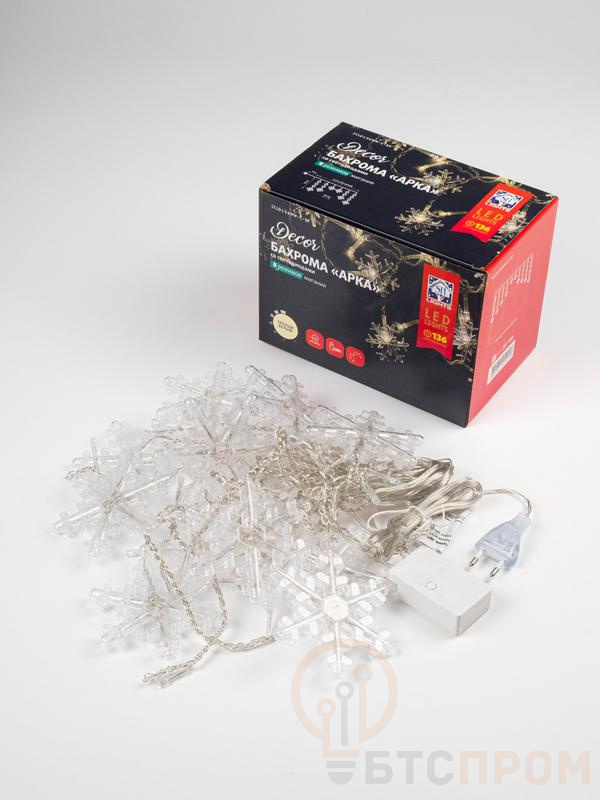 Гирлянда Бахрома "Арка" ICLD136WW-C-SF (артикул 4690601054258) сочетает в себе уют теплого белого свечения (WW) и зимнюю тематику снежинок (SF). Это, пожалуй, самый классический и популярный вариант для новогоднего украшения дома. Теплый свет смягчает строгость снежинок, создавая по-настоящему сказочную и семейную атмосферу. Арка над входной дверью в гостиную или в дверном проеме будет символизировать вход в мир праздника и волшебства.