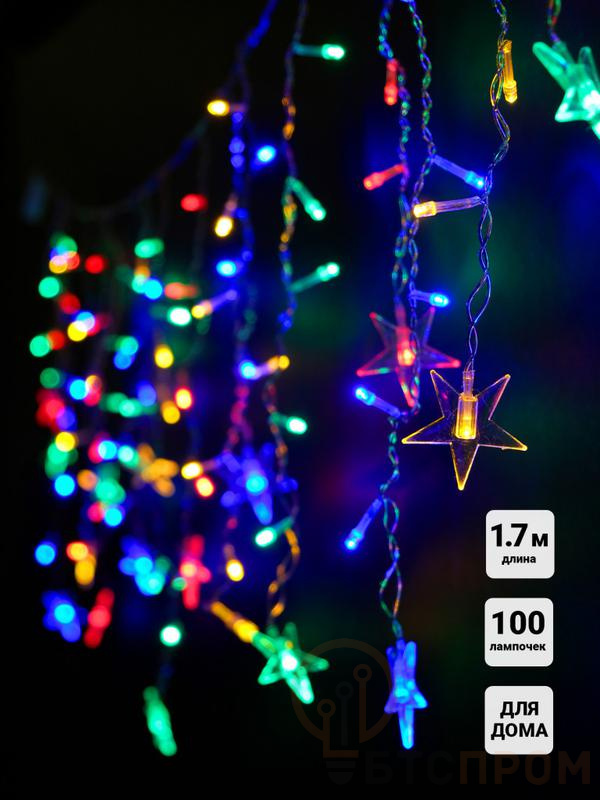 Гирлянда "Бахрома" DICLD-100M-C 100 мультиколорт светодиодов 1.7х0.5м с насадками SHLights 4690601047199