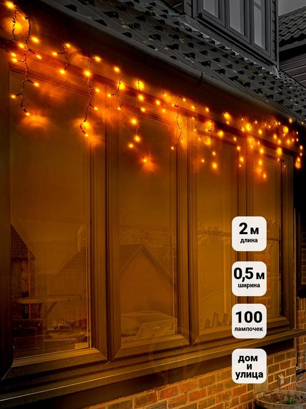 Гирлянда "Бахрома" RB-OIC100LSE-B-T-I4-F (артикул 4690601050007). Модель с приставкой RB, возможно, обозначающей особую серию. 100 синих/белых светодиодов, эффект мерцания. Уличная, но с возможностью соединения до 10 шт.