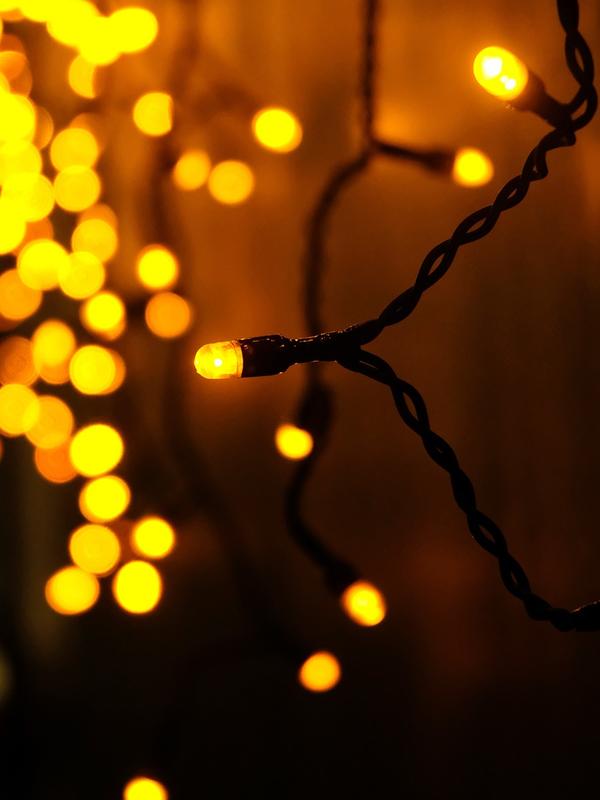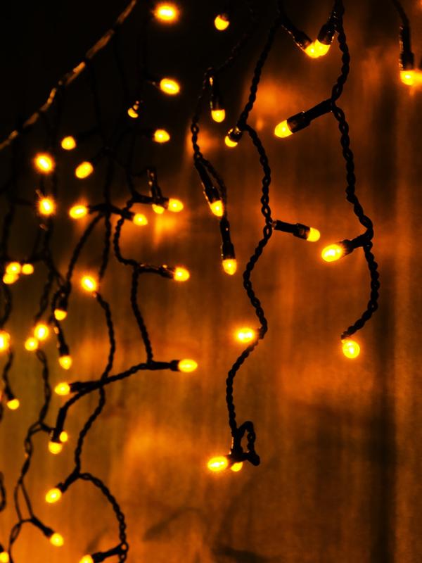 Гирлянда "Бахрома" RB-OIC100LSE-Y-T-I4 (артикул RB-OIC100LSE) с желтыми светодиодами. Желтый свет создает очень теплую и солнечную атмосферу. Статическое свечение. Уличная, соединяемая до 10 шт.
