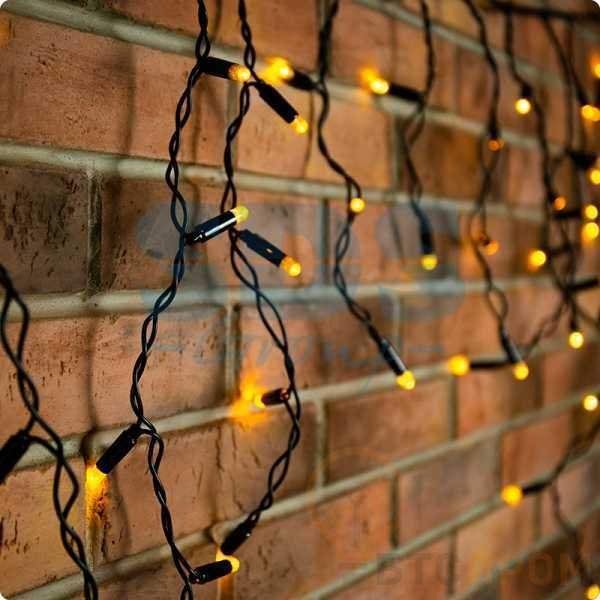 Гирлянда Айсикл (бахрома) светодиодный, 2,4 х 0,6 м, черный провод, 230 В, диоды жёлтые, 88 LED NEON-NIGHT