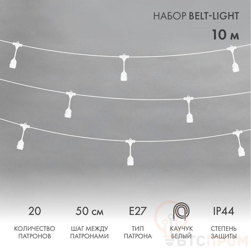 Гирлянда "Белт Лайт" 10м шаг 50см 20 подвесных патронов 550Вт IP44 провод каучук бел. Neon-Night 331-336