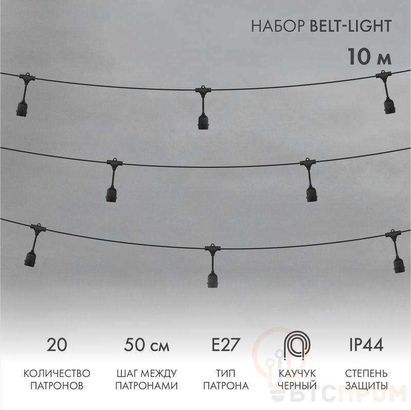 Гирлянда "Белт Лайт" 10м шаг 50см 20 подвесных патронов 550Вт IP44 провод каучук черн. Neon-Night 331-335