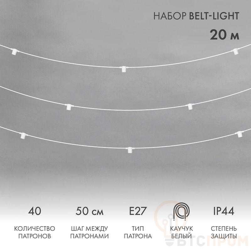 «Белт-Лайт» – популярная гирлянда для украшения фасадов домов, зданий, создания перетяжек между деревьями, столбами. Также такие гирлянды широко используются в украшении кафе, ресторанов, на свадебных площадках и в фотозонах. 20-метровый шнур оснащен 40 патронами с цоколем Е27. Патроны располагаются на иллюминационном кабеле с шагом 50 см. Для подключения к сети предусмотрен 3-метровый шнур с евровилкой. Для удобства использования предусмотрена возможность соединения гирлянды до 4-х комплектов. Провод находится в надежной изоляции из морозостойкого каучука. Вся конструкция защищена от влаги и пыли по стандарту IP44, поэтому предполагается размещение как дома, так и на улице. Гирлянда длиной 10 метров станет прекрасным украшением интерьера или экстерьера.
