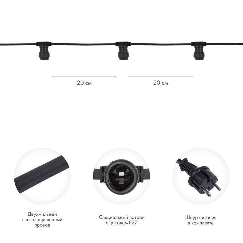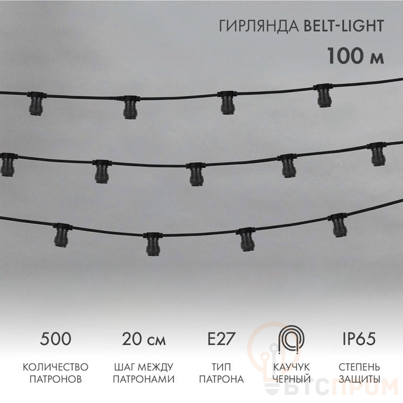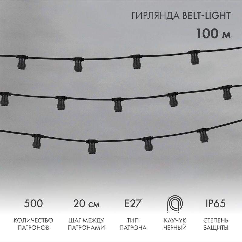 Гирлянда "Белт Лайт" 2жил. шаг 20см патроны E27 1320Вт IP65 влагостойкая провод черн. (уп.100м) Neon-Night 331-211
