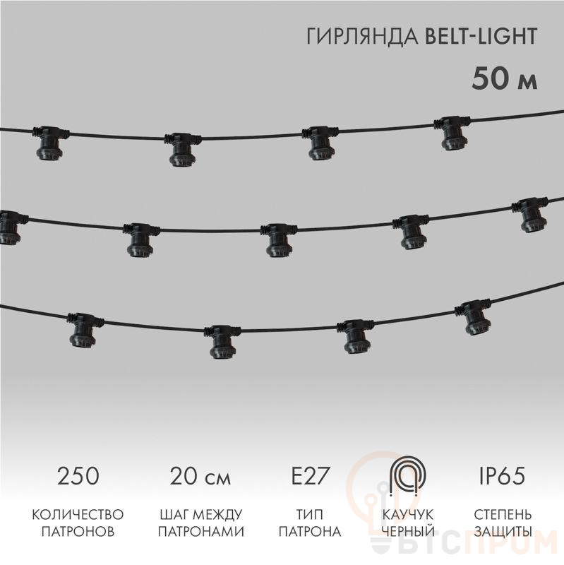 Гирлянда "Белт Лайт" 2жил. шаг 20см патроны E27 1320Вт IP65 влагостойкая провод черн. (уп.50м) Neon-Night 331-211