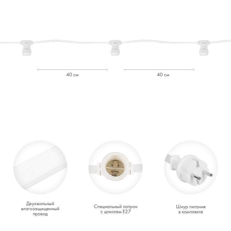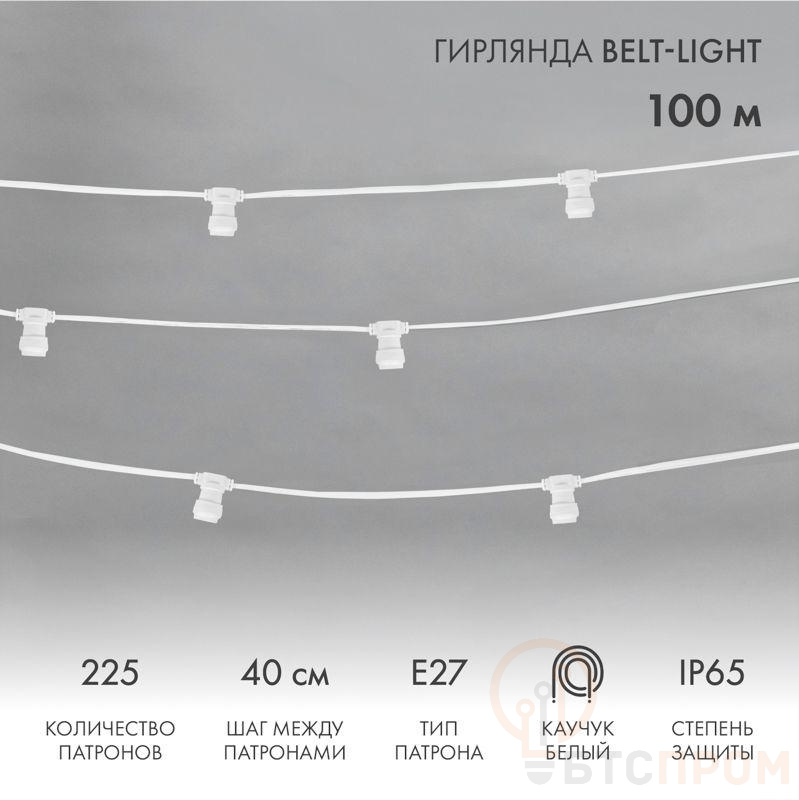 Гирлянда "Белт Лайт" 2жил. шаг 40см патроны E27 1320Вт IP65 влагостойкая провод бел. (уп.100м) Neon-Night 331-252