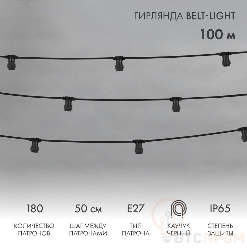 Гирлянда "Белт Лайт" 2жил. шаг 50см патроны E27 1320Вт IP65 влагостойкая провод черн. (уп.100м) Neon-Night 331-213