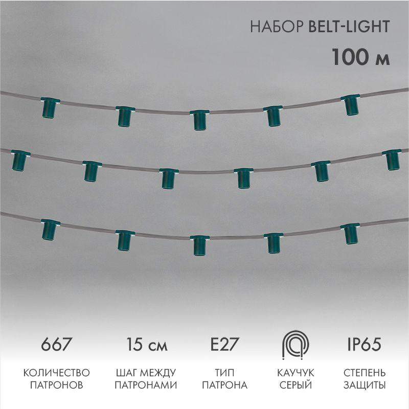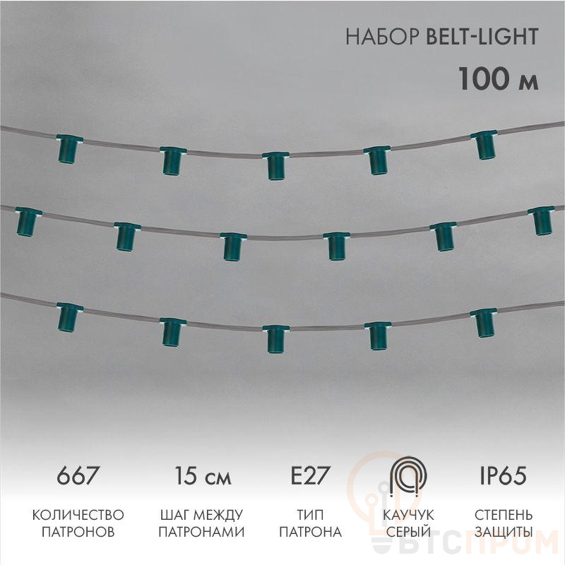 Гирлянда "Белт Лайт" 5жил. шаг 15см патроны E27 1320Вт IP65 влагостойкая провод сер. (уп.100м) Neon-Night 331-221