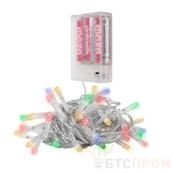 Гирлянда DC-G01-80M (артикул 5047754) длиной 7.8 метра с 80 RGB-светодиодами. 8 режимов. Питание от 3 батареек АА (не в комплекте). Беспроводная.
