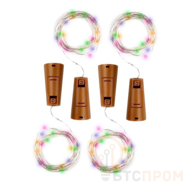 Гирлянда "Пробки" DC-G04-20MS4 (артикул 5047938). Комплект из 4 гирлянд-пробок. Каждая имеет 20 RGB-светодиодов. Питание от мини-батареек (в комплекте).