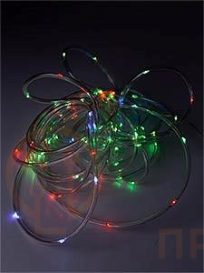 Гирлянда ДЮРАЛАЙТ KOC_GIR-B103. 10 метров буйства цвета! Нестандартная гирлянда - светящаяся гибкая трубка (100 светодиодов капелек на медной проволоке внутри). Меняйте режимы мигания и цветовую гамму с помощью пульта ДУ. Работает от 3 батареек АА (в комплект поставки не входят)