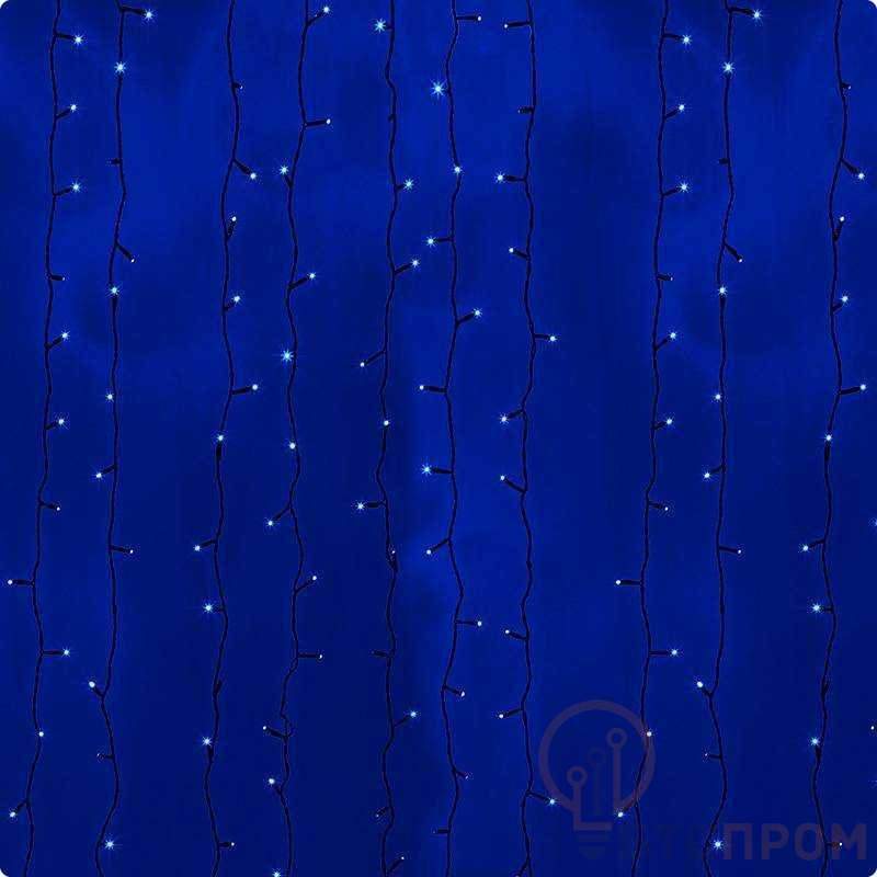 Гирлянда "Светодиодный Дождь" 2х6м, постоянное свечение, черный провод, 230 В, диоды СИНИЕ, 1140 LED