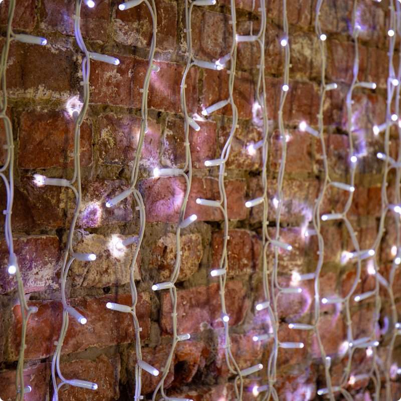 ДОЖДЬ (занавес) 2х1,5м, белый КАУЧУК IP67, 360 LED БЕЛЫЕ к разветвителям не подходит