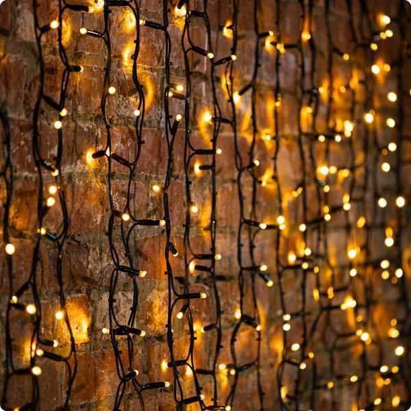 Гирлянда светодиодная "Светодиодный Дождь" 2х1.5м 360LED тепл. бел. 22Вт 230В IP67 постоян. свечение провод черн. каучук Neon-Night 237-126