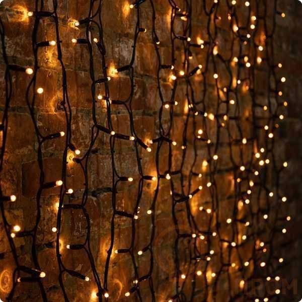 Гирлянда "Светодиодный Дождь" 2х1,5м, постоянное свечение, черный провод "КАУЧУК", 230 В, диоды ЖЁЛТЫЕ, 360 LED
