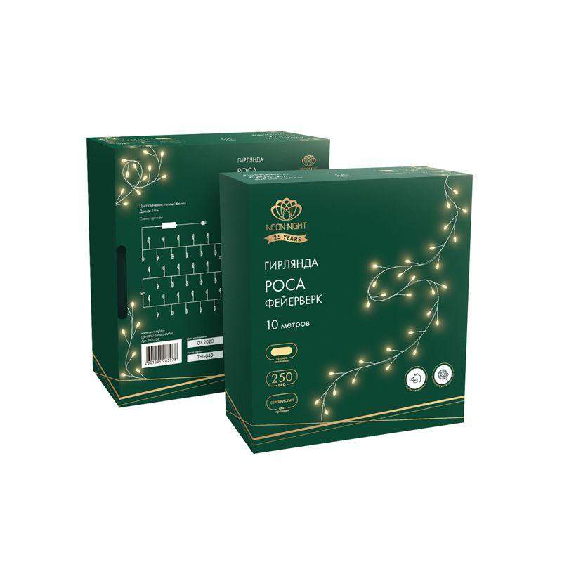 Гирлянда светодиодная "Роса "Фейерверк" 10м 250LED тепл. бел. 7.2Вт IP20 с контроллером на катушке Neon-Night 303-436