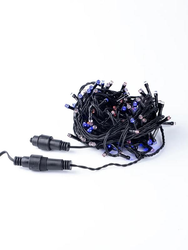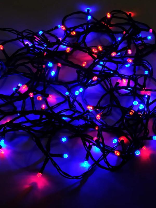 Чудесное украшение для сада и дома, для новогодних елей и малых архитектурных форм - множество очень ярких лампочек, напоминающих светлячков. Незаменимый элемент новогоднего и рождественского оформления, однако и в летние дни эта гирлянда создаст неповторимую атмосферу уюта и романтики на летней веранде или в саду. Может использоваться как в помещении, так и на улице. Назначение - для использования внутри и вне помещения (IP44); Длина - 12 метров; Тип ламп - светодиоды (цвет синий, красный); Расстояние между лампами - 10 см, диаметр лампы - 5 мм; Кол-во ламп - 120; Провод - черный, сетевой шнур: 150см; Материал изоляции - ПВХ; Потребляемая мощность - 7,2 Вт; Питание - от сети 220В. Дополнительно - коннектор, позволяющий подключать последовательно до 10 гирлянд.